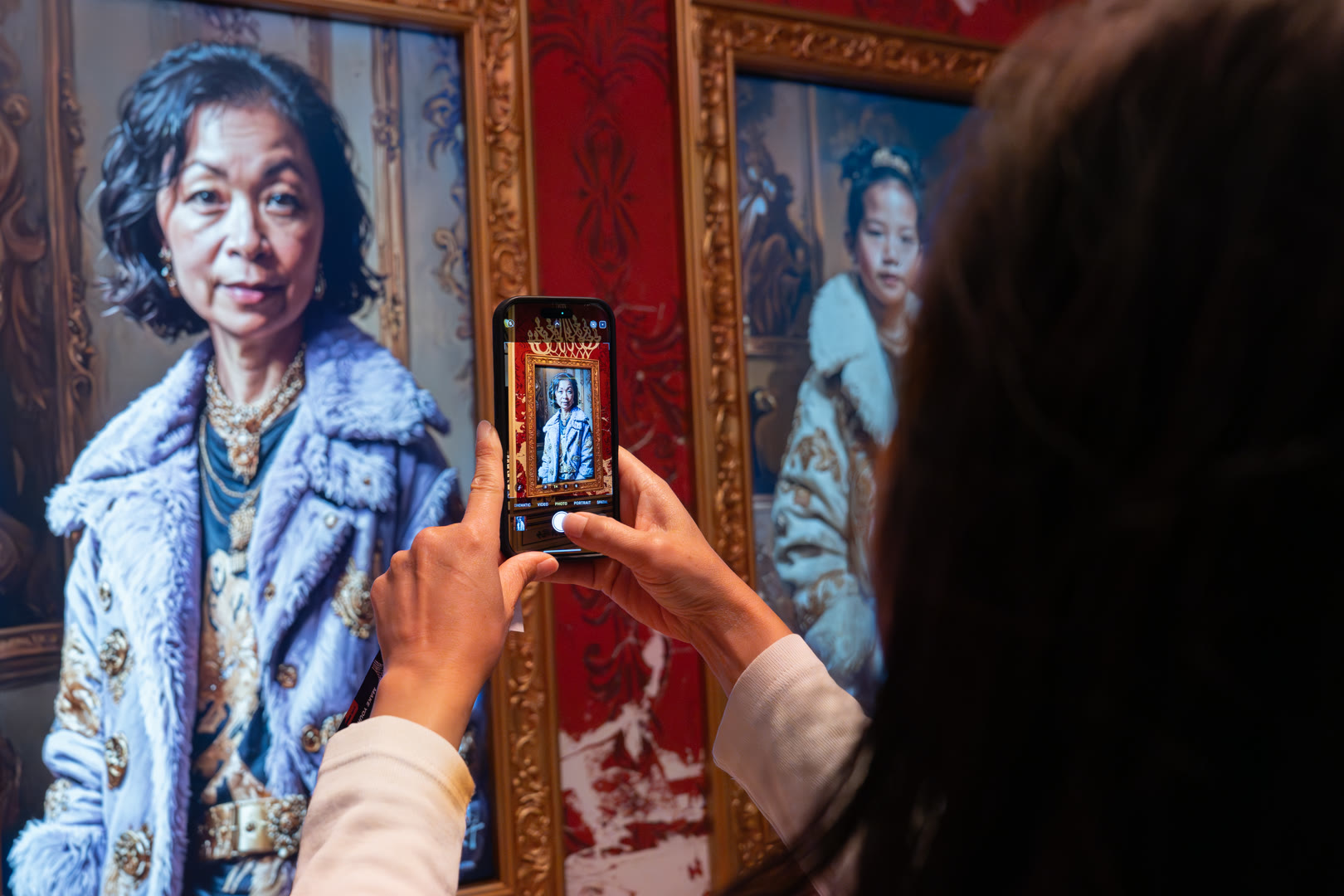 For NBA All-Star Weekend 2025, the NBA 2K League asked DE-YAN to create a fully interactive playground fusing renaissance opulence with modern streetwear and street culture. At the heart of the experience was a custom-built backend, Hyperion, which generated unique AI “royal avatars” for every guest. Each avatar balanced classical portraiture with contemporary fashion, and evolved as players moved through the space—new outfits and colorways appeared with every game played.
